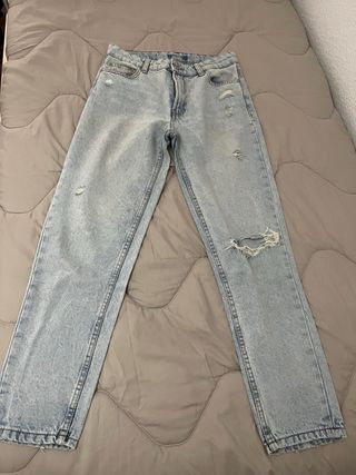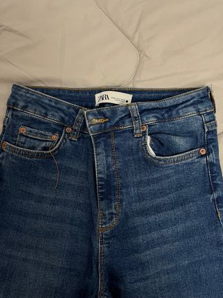 Pantalón vaquero de Zara en buen estado. - Tejido elástico para mayor comodidad. - Corte ajustado. - Lavado claro.