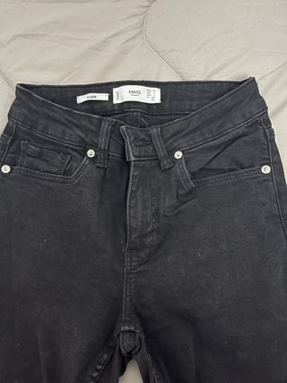 Pantalón vaquero estilo campana. 1 de color negro de mango y otra vaquero de zara. Talla 36/38. 4€ cada uno.
