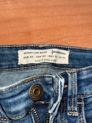 Pantalones vaqueros de Stradivarius, estilo skinny y tiro bajo. - Talla EUR 32. - Fabricados en Bangladesh.