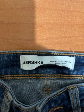 Pantalón vaquero de la marca Bershka. - Talla EUR 34 / MEX 24. - Fabricado en Camboya.