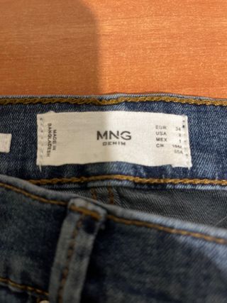 Pantalón vaquero de la marca MNG, con un diseño elástico para mayor comodidad. - Fabricado en Bangladesh. - Talla EUR 34, USA 2, MEX 1. - Composición: Denim.
