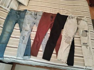 Varios pantalones usados pero en buen estado. Cada uno tiene su talla y su marca. Hay de Stradivarius, de shein, primark. El precio es el conjunto, individuales son 5€ cada uno