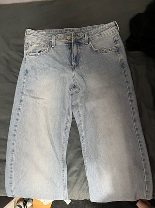 Pantalón vaquero de corte barrel tiro bajo talla 38, no tiene ningun uso simplemente me queda grande