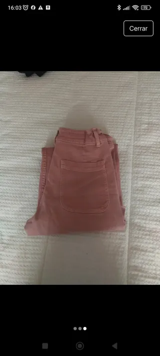 Pantalón vaquero de corte recto en color lila, es una 32 pero a mi me queda ancho y yo uso 32 - Cintura alta. - Cierre de cremallera y botón. - Bolsillos delanteros y traseros.