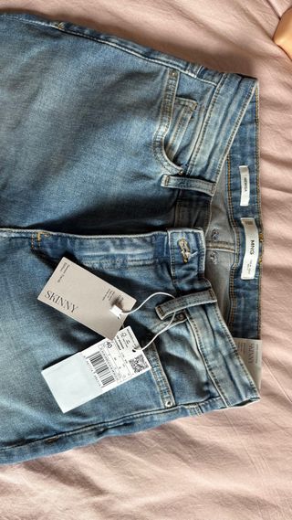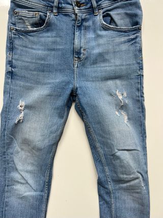 Pantalones vaqueros ajustados de Pull&Bear. - Corte skinny. - Lavado desgastado. - Cierre con cremallera y boton - Bolsillos delante y detras Talla 36