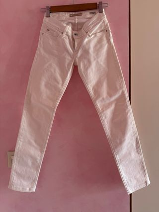 Pantalones vaqueros de corte ajustado en color blanco. - Cierre con doble botón. - Bolsillos delanteros y traseros. - Diseño de cinco bolsillos.