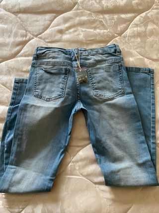 Pantalones vaqueros de Bershka, estilo skinny y tiro bajo. - Diseño de cinco bolsillos. - Cierre de cremallera y botón. poco uso