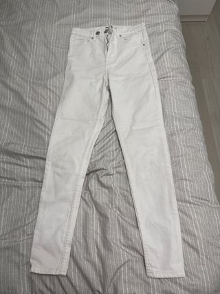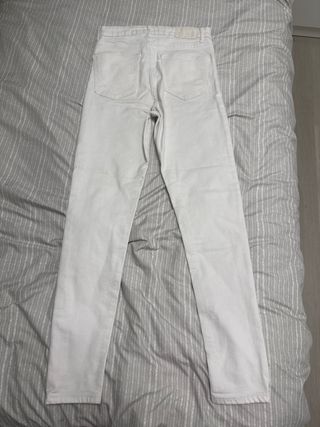 Pantalón pitillo de Zara en color blanco. Un básico versátil para cualquier ocasión. - Corte ajustado. - Diseño de cinco bolsillos. - Cierre con cremallera y botón.
