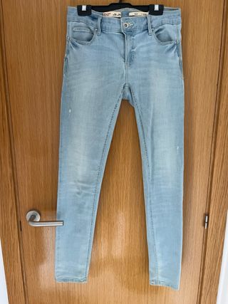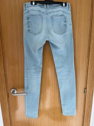 Pantalón vaquero low waist skinny. Es pitillo color vaquero azul claro talla 32. En perfecto estado porque apenas se ha usado. Tengo otro igual pero azul, y otro en negro, el lote de los tres tengo por 15€