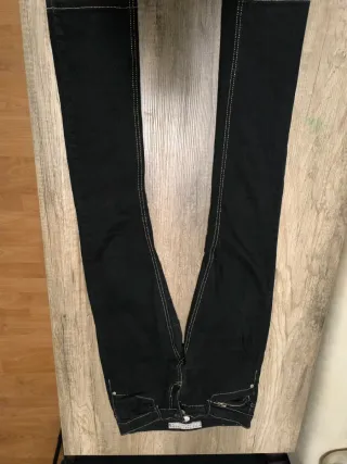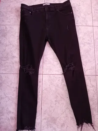 Pantalón vaquero de la marca Zara en color negro. Un básico para cualquier armario. - Talla pequeño, equivale a una 36. - Diseño clásico. - Corte moderno. - Elástico.