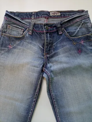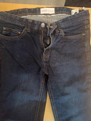 Pantalones vaqueros de corte ajustado. Dice talla s pero es más pequeño. Más cosas en mi perfil. Tiene un tajito muy pequeño ver foto - Tejido denim. - Cierre de botón y cremallera.