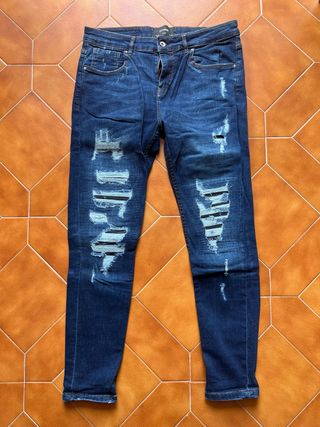Pantalón vaquero estilo skinny con un diseño moderno y desgastado. Talla 42 eu - Corte ajustado. - Efecto desgastado y rotos. - Lavado en tono azul.