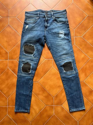 Pantalones vaqueros ajustados de H&M. Talla 42eu - Diseño desgastado y con detalles. - Cremalleras en los tobillos. - Estilo motero en las rodillas.
