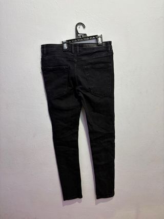 Pantalones pitillo de color negro de la marca Primark. - Corte ajustado. - Diseño de cinco bolsillos. - Cierre de cremallera y botón. -Elásticos