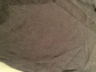 Pantalones vaqueros negros con un diseño de textura paisley. - Cintura alta. - Cierre de botón y cremallera. - Bolsillos delanteros y traseros.
