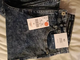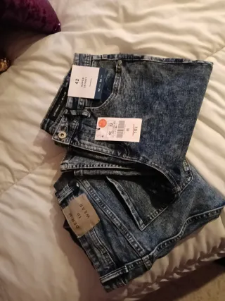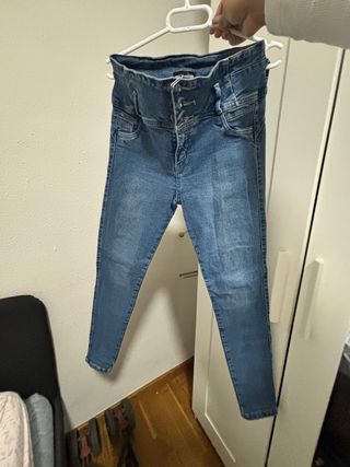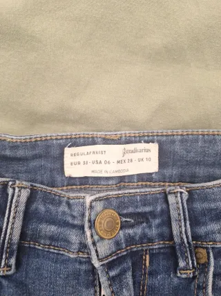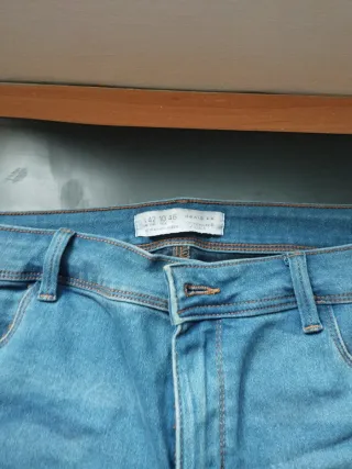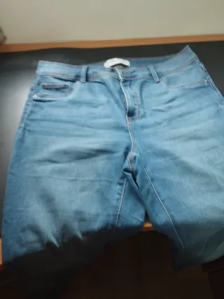 Pantalón vaquero largo de Stradivarius. - Diseño clásico y versátil. - Tejido denim. - Tono azul clásico bonito. - Bolsillos reales. - Talla 38 pero podría ser 36.