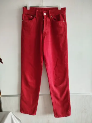 Pantalón vaquero de corte recto en color rojo. - Tejido denim. - Dos bolsillos traseros.