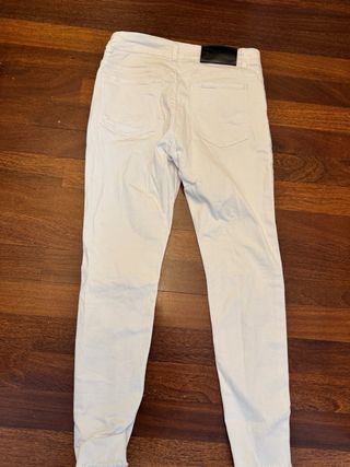 Pantalón de Lefties en color blanco. Diseño moderno y cómodo. - Cintura con trabillas. - Cierre de cremallera y botón. - Bolsillos delanteros. - Bajo deshilachado. - Puesto una sola vez.
