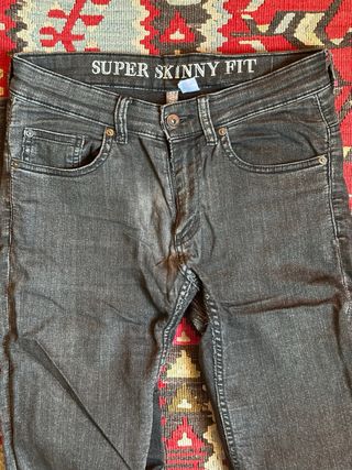 Pantalón de corte super skinny para hombre. -Se sienten bastante ajustados. Diría que se siente más una talla 36 que una 38. - Tono gris.