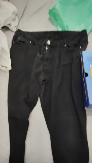 Pantalones vaqueros en diferentes tonos: • 1 vaquero en azul claro. Firma Stradivarius. Talla 36. • 1 vaquero en azul jaspeado. Firma Stradivarius. Talla 38 • 1 Vaquero azul oscuro. Firma Zara. Talla 36. • Pantalón negro ajustado pitillo con ribetes en cuero negro. Talla S. Firma Zara Collection. Precio individual 4€ Lote de los 4 a 14€. * REGALO camiseta negra de HARD ROCK. Talla M Mas ROPA de Hombre, Mujer, Niña, Niño, Bebé y joven EN MI PERFIL( Abrigos abrigo chaqueta, chaquetas, Vestidos vestido pantalones pantalón camisas, blusas blusa jerseys jersey chubasqueros, plumíferos, parkas parka trajes gabardina bolsos zapatos bo