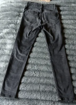 Conjunto de dos pantalones vaqueros con un diseño moderno. - Unos pantalones con efecto desgastado y lavado a la piedra cierre con botones. - El otro pantalón tiene una franja lateral blanca y negra cierre con cremallera. - por separado 4€
