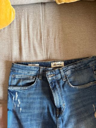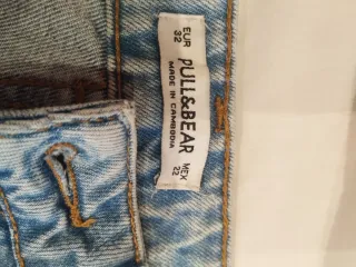 Pantalón vaquero de la marca Pull&Bear en color azul. Fabricado en Camboya. - Talla EUR 32 / MEX 22.