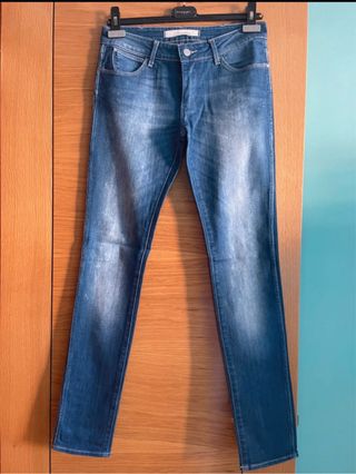 pantalón vaquero casi nuevo. Talla 28. Modelo "Tilted Tor" raro y difícil de encontrar, tiene talle más alto por detrás que por delante con lo cual parece un talle bajo pero por detrás no te deja la hucha al aire.