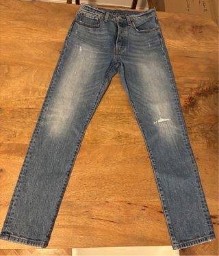 Pantalones vaqueros Levi's 501 estilo skinny para mujer. Un clásico reinventado con un corte moderno. - Corte ajustado. - Lavado desgastado. - Detalle de rotura en rodilla. - Talla W26 L30.