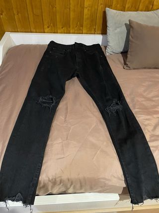 Pantalones vaqueros Levis negros, modelo 519 Hi-Ball con roto en las rodillas original. Talla 29 - Talla: 29 - Color: Negro. - Corte: Skinny.