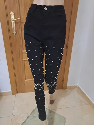 Vaqueros negros con perlas
