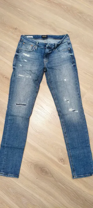 Pantalones vaqueros Jack & Jones estilo skinny. - Talla 33/32. - Lavado desgastado con rotos. - Diseño de cinco bolsillos.
