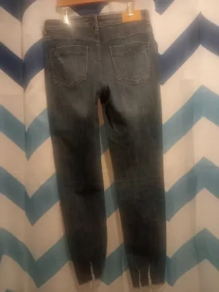 Pantalón vaquero pitillo en color gris. - Diseño clásico de cinco bolsillos. - Cierre de cremallera y botón. - Costuras reforzadas. Buen estado debido a poco uso