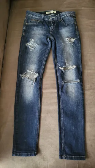Pantalón vaquero pitillo. 5 € cada uno o 3 por 10 €. Ver más en mi perfil. - Estilo pitillo. - Parches decorativos. - Efecto desgastado y roto.