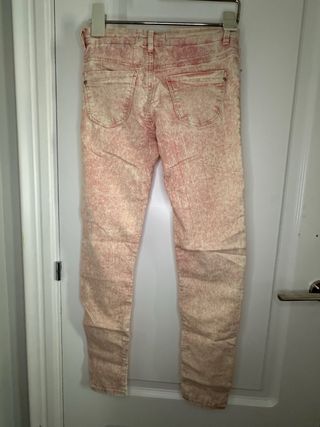 Pantalón vaquero de Lefties con un llamativo efecto tie-dye en tono rosa. Su corte es ajustado y moderno. - Efecto tie-dye desgastado. - Corte pitillo. - Cintura alta. -Sin bolsillos