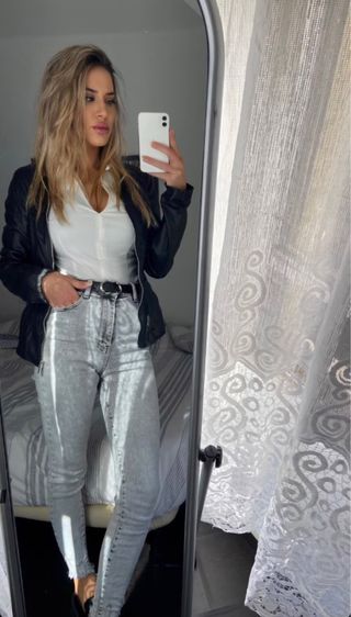 Pantalon de cuero, stradivarius, talla34 12€ Pantalon vaquero, negro bershka talla34 10€ Pantalon azul vaquero, stradivarius, talla 38 10€ Leggins marca UP talla M 4€ Pantalon de traje inside talla S 8€
