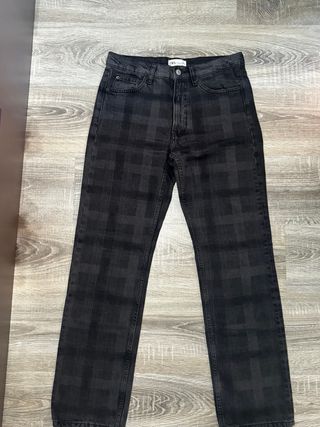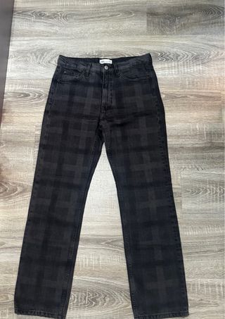 Pantalón vaquero de Zara con un diseño de cuadros en tono negro. - Diseño de cuadros - Corte recto