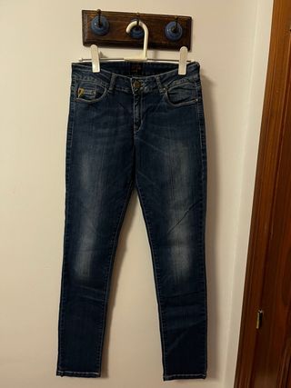¡El básico que nunca falla para tu día a día! 👖 Vendo estos pantalones vaqueros de la marca Denim Co. en excelente estado. Son unos jeans muy cómodos, con un punto elástico que se adapta perfectamente al cuerpo sin perder la forma. Detalles técnicos: Marca: Denim Co. Corte: Skinny (ajustado de pierna). Talla: W34 / L30 (Cintura 34, Largo 30). Colores disponibles: * Azul Índigo (lavado medio/oscuro). Azul Claro (lavado desgastado). Cierre: Botón metálico clásico y cremallera. Estado y Calidad: Los vaqueros están muy bien conservados, manteniendo la intensidad del color y las costuras intactas.
