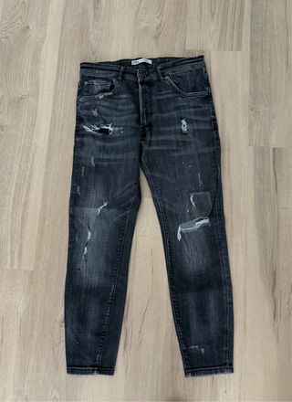 Pantalón vaquero pitillo de Zara. - Corte ajustado. - Lavado clásico. - Cierre de cremallera y botón.