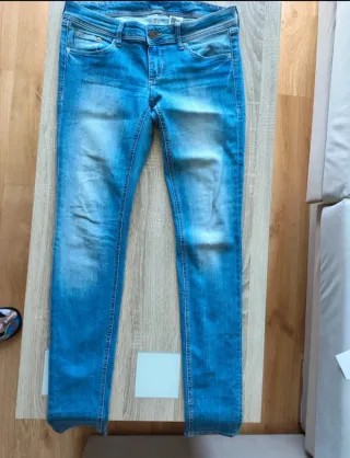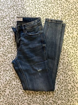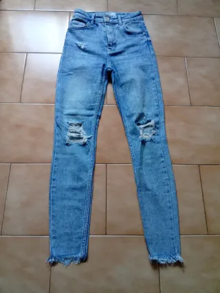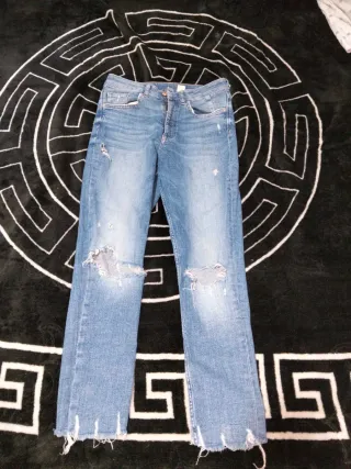 Pantalón vaquero largo de Stradivarius. La talla es 36 pero serviría para una 34 ya que es bastante ajustado. Está como nuevo. - Diseño desgastado. - Corte ajustado.
