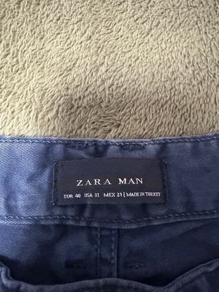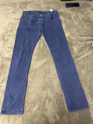 Pantalón de corte vaquero de 5 bolsillos color azul marino. Talla 38 - Detalle de cremallera en uno de los bolsillos delanteros. - Cierre con botón y cremallera. - Dos bolsillos traseros. Bajos con cremallera