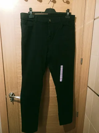 Pantalón negro para mujer, talla 48, completamente nuevo a estrenar, con la pegatina original todavía puesta. Corte recto, cómodo y combinable con cualquier look. Tela resistente, ideal para uso diario, trabajo o vestir. Perfecto para quien busca un pantalón básico, versátil y sin estrenar. 📌 Estado: Nuevo 📌 Color: Negro 📌 Talla: 48 📌 Bolsillos delanteros y traseros 📌 Con botón y cremallera