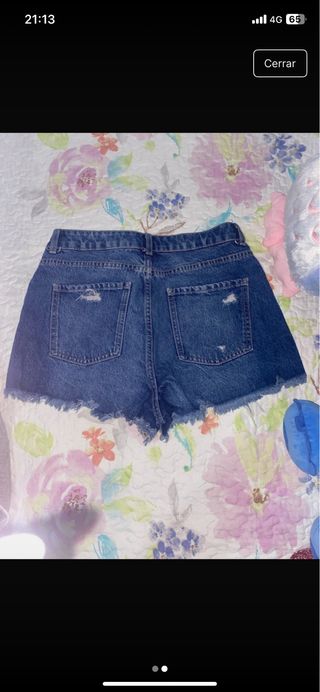 Pantalón corto vaquero de mujer con un moderno diseño desgastado y rotos. - Cintura alta. - Cierre de botón y cremallera. - Bolsillos delanteros y traseros. - Bajo deshilachado. - Precio NO negociable.