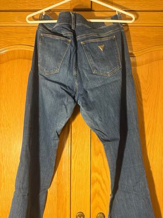 Pantalón vaquero de corte acampanado con un diseño moderno. - Cierre de botón y cremallera. - Detalle de botones en los bajos. - Costuras en contraste. Da poca talla como una 40-42.
