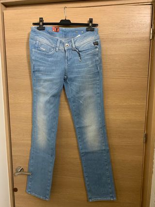 Pantalón vaquero de corte ajustado, pitillo. Muy nuevo, talla 36 - Diseño desgastado. - Bolsillos delanteros y traseros.