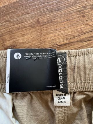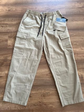 Pantalones cargo de la marca Volcom en color beige, completamente nuevos con etiquetas - Cintura elástica con cordón. - Bolsillos cargo laterales. - Etiqueta de la marca incluida.