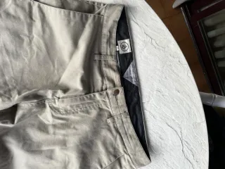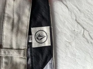 Pantalones de la marca Volcom en tonos beige y azul. - Diseño moderno. - Etiqueta de cuero en la parte trasera. - Pequeño logo de Volcom en el bolsillo trasero.
