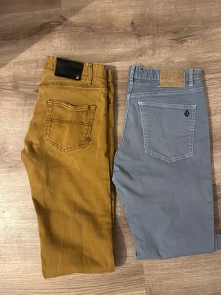 Dos pares de pantalones Volcom. - Unos de color azul. - Otros de color granate.