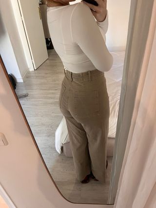 Pantalones de corte recto de Zara. - Diseño de tiro alto. - Cintura con trabillas y cierre de botón y cremallera. - Bolsillos delanteros y traseros. - Costuras vistas.