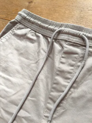 Pantalón cargo de Zara en color beige y verde oliva. Diseño moderno y cómodo. - Bolsillos cargo en los laterales. - Cintura elástica con cordón. - Puños ajustados.