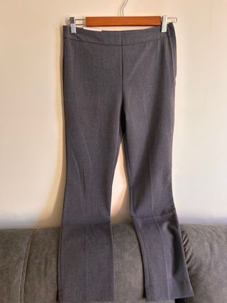 Pantalón de vestir de la marca Zara en color gris. Diseño elegante y moderno. - Corte recto. - Cintura con trabillas. - Bolsillos laterales.